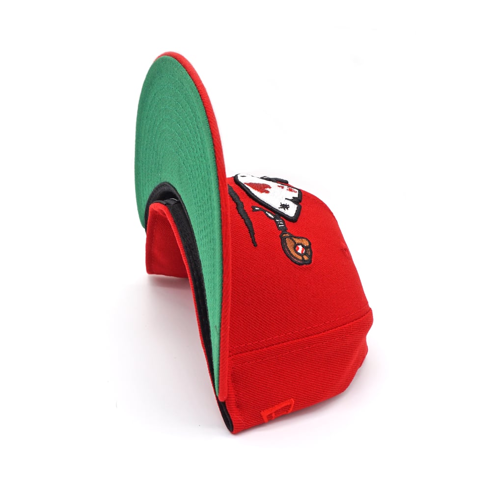 Crown: Scarlet / Visor: Scarlet / Under: Kelly Green / Button: Scarlet