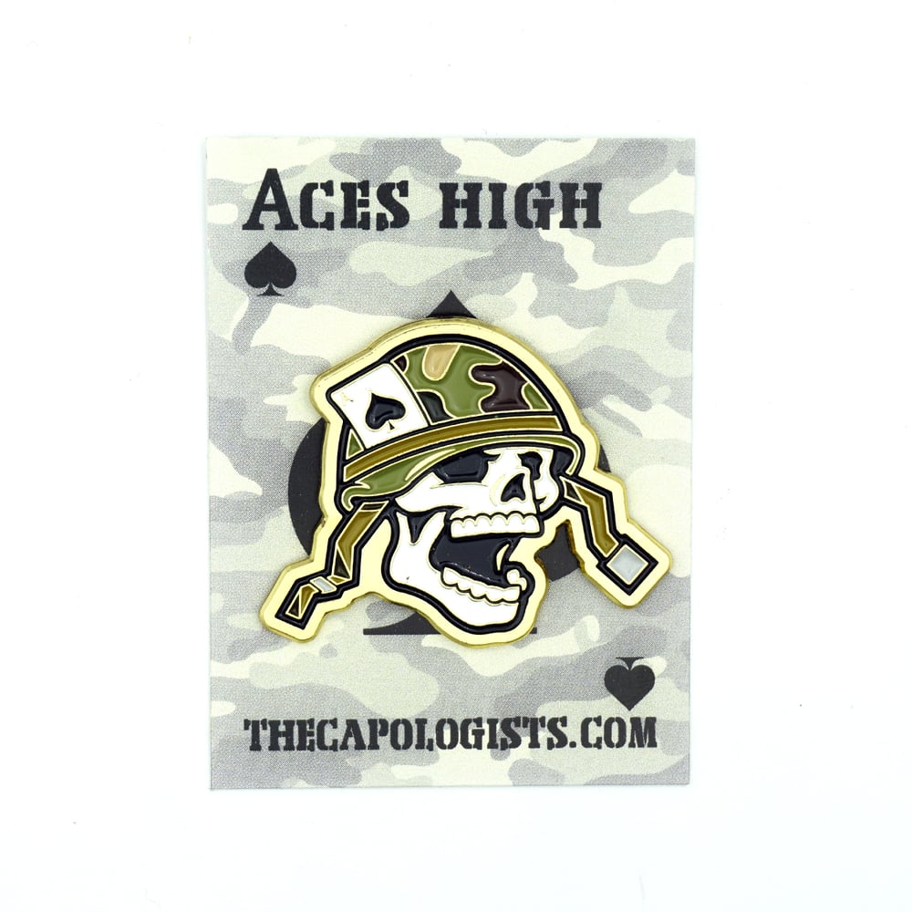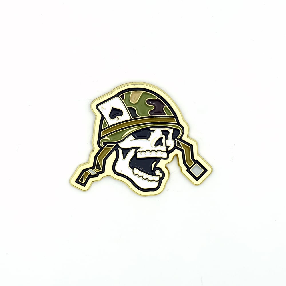 This soft enamel pin is 1.25 inches wide with a gold finish.