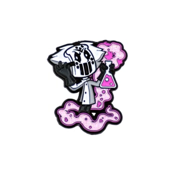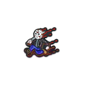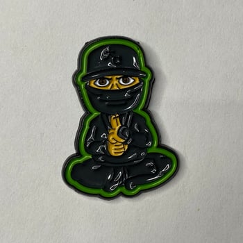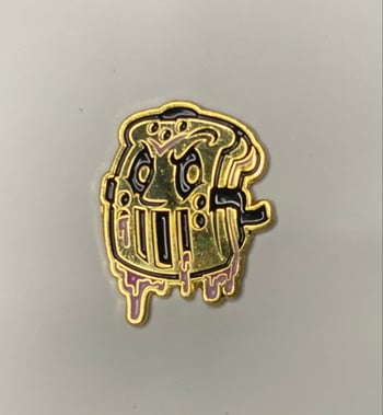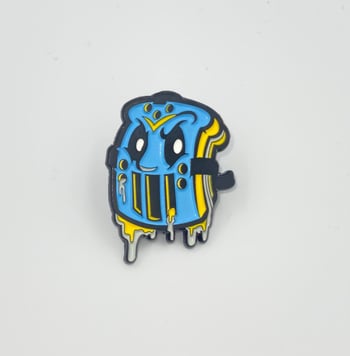 This soft enamel pin is 1.25 inches tall with a black metal finish.