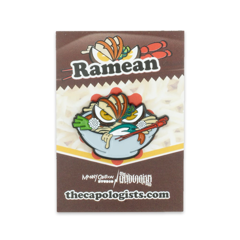 The second collaboration between The Capologists and Manny Cartoon...RAMEAN! This spicy bowl of meanness is now available in pin form!